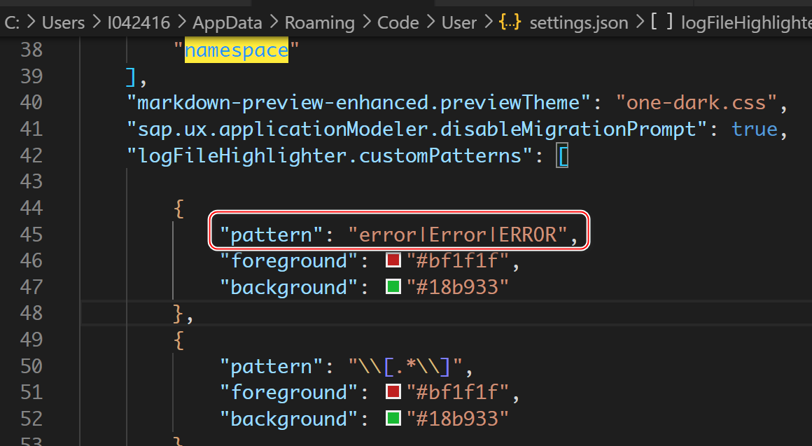 还可以编辑 settings.json, 对需要高亮的规则进行自定义设置: