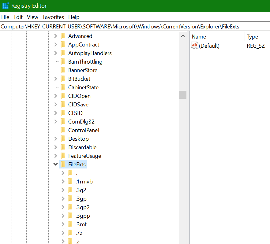 HKEY_CURRENT_USER\SOFTWARE\Microsoft\Windows\CurrentVersion\Explorer\FileExts:
