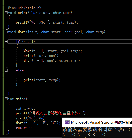 (3)以A杆为中介;从B杆将1至n-1号盘移至C杆