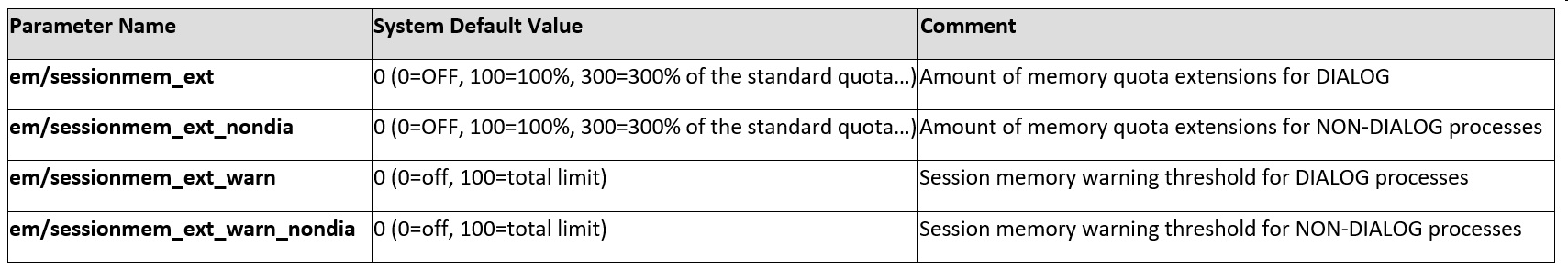 默认内存配额适用于所有用户,默认情况下没有人可以消耗更多内存。但是,通过配额扩展,我们可以授予特定用户(必须在事务 SMEM_USEREX 中注册)不同的配额,允许他们消费更多或更少)