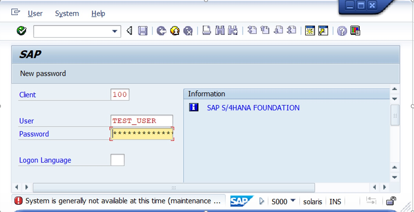 - 普通用户将无法登录,只有具有特殊安全配置文件的系统管理员才能连接(事务 SECPOL)