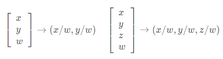 欧几里得坐标系->齐次坐标系->欧几里得坐标系.