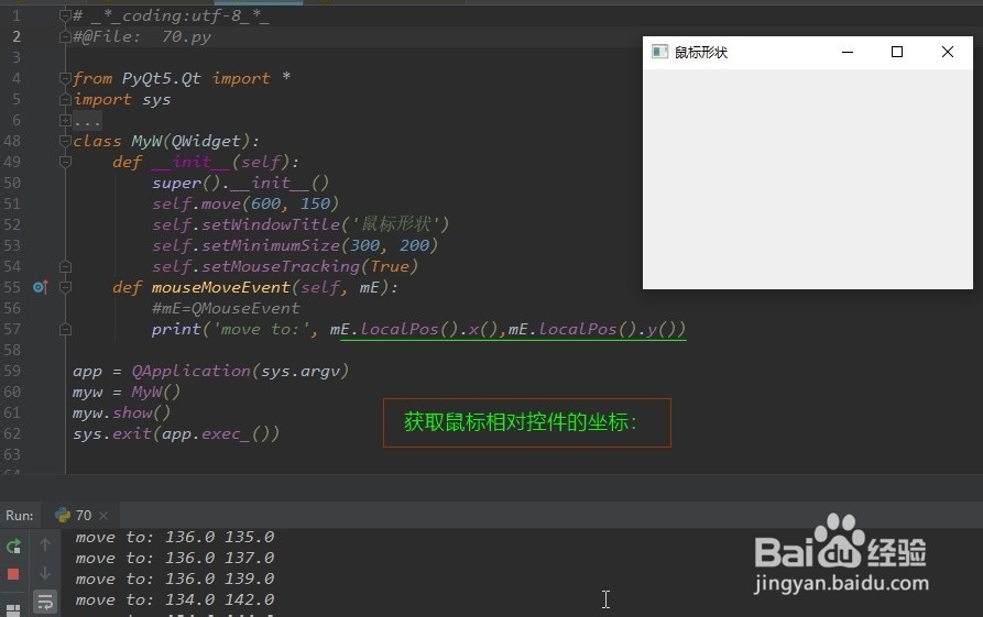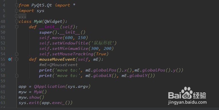 print('moving...')参数mE,是QMouseEvent类对象,(mEvent = QMouseEvent)