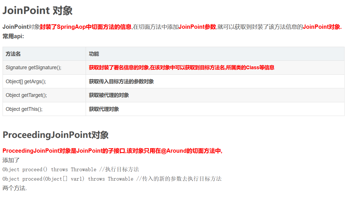 * 方法列表可以通过ProceedingJoinPoint获取执行的切点