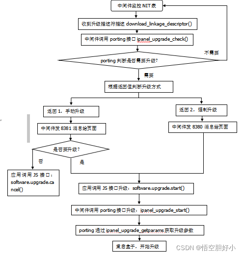 7、如果收到8381消息,表示进行手动升级,如果用户选择进行升级,调用中间件software.upgrade.start接口。