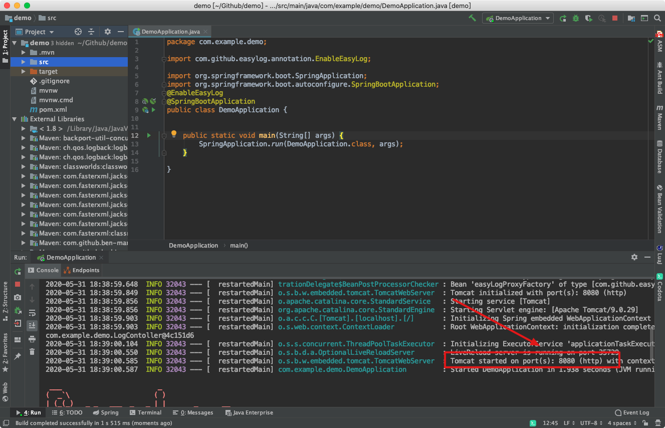 下面我们以SpringBoot应用为例子,启动一个SpringBoot项目。端口是 8080