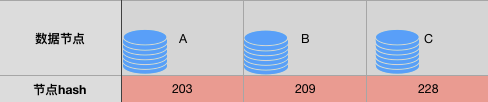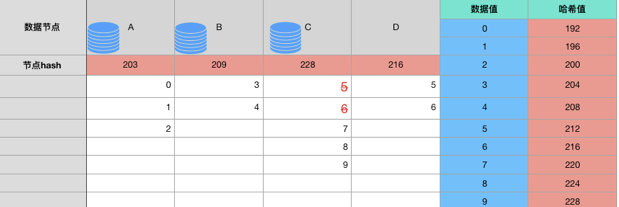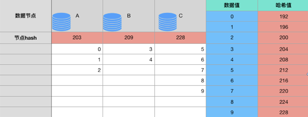 当大于228都存203节点,于是就维护了一个圆形,即所有数据都能找到其节点了
