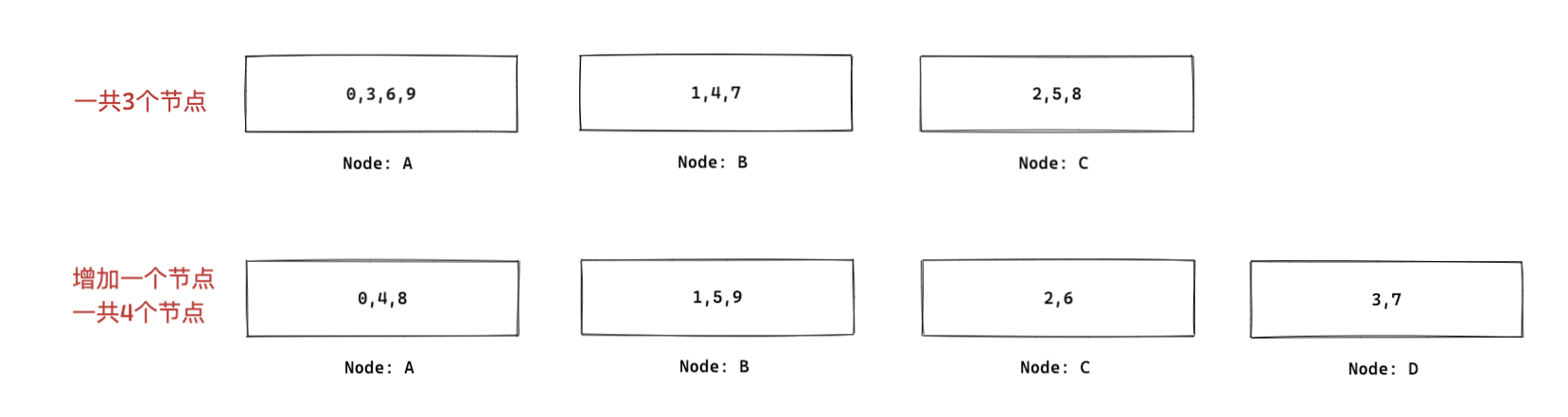 总结: 数据在增加了一个节点后,3,4,5,6,7,8,9都需要做搬迁,成本太高了