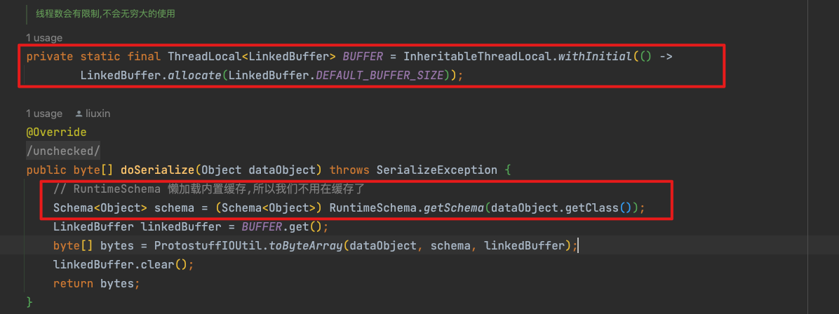 private static final ThreadLocal<LinkedBuffer> BUFFER = InheritableThreadLocal.withInitial(() ->