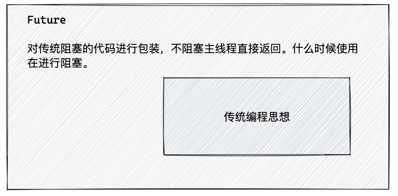 传统的编程思想是: 基于数据处理来写处理逻辑,逻辑中可能直接就阻塞了。 反应式编程思想是: 我们只写数据处理逻辑,里面虽然也有阻塞,但是并不直接执行。类似线程中,Future#get