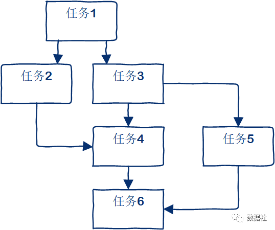 多个任务单元之间往往有着强依赖关系,上游任务执行并成功,下游任务才可以执行。比如上游任务1结束后拿到结果,下游任务2、任务3需结合任务1的结果才能执行,因此下游任务的开始一定是在上游任务成功运行拿到结果之后才可以开始。而为了保证数据处理结果的准确性,就必须要求这些任务按照上下游依赖关系有序、高效的执行,最终确保能按时正常生成业务指标。