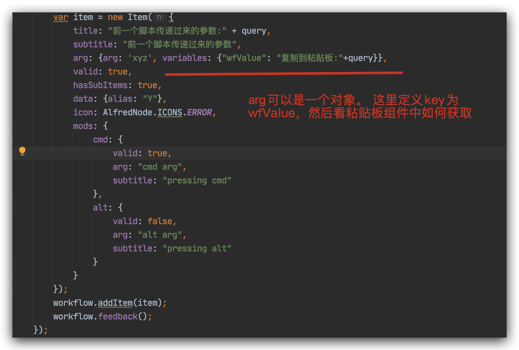 AlfredNode.utils.generateVars({arg: 'xyz', variables: {key: value}};