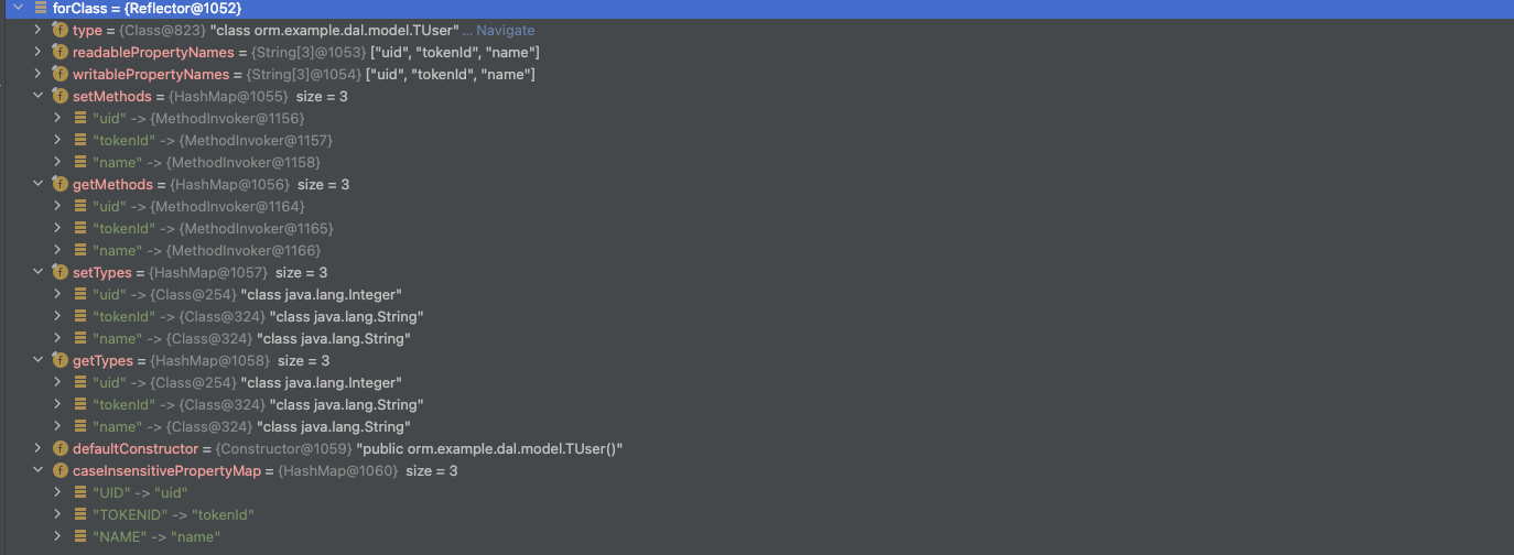 Reflector forClass = reflectorFactory.findForClass(TUser.class);