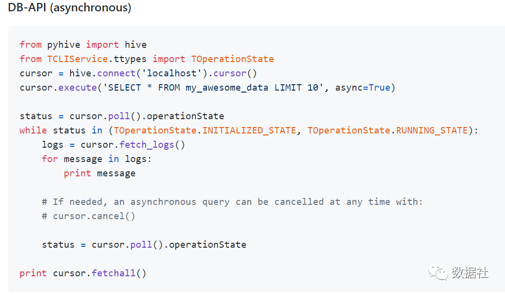 那么我们以前使用Oracle的存储过程怎么迁移到Hive中呢?用过Hive的同学可能都知道,Hive是没有想Oracle那样的游标循环呀,所以我们必须借助其他语言来配合hive一起完成数据仓库的ETL过程。比如这个项目:PyHive(https://github.com/dropbox/PyHive)