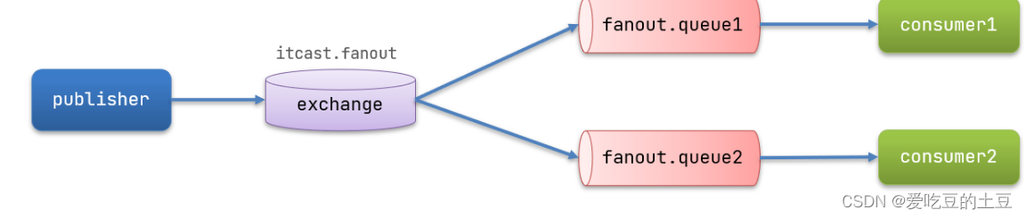 Fanout交换机将消息路由给每一个与之绑定的队列