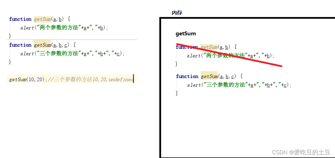 同名方法之间,存在的是覆盖关系。 新内容覆盖旧内容。调用方法时,执行的是最下面的新定义。