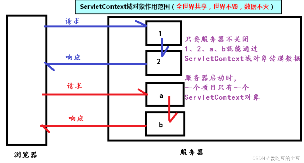 ServletContext作用范围:(服务器启动,ServletContext创建。服务器关闭,ServletContext销毁)