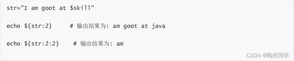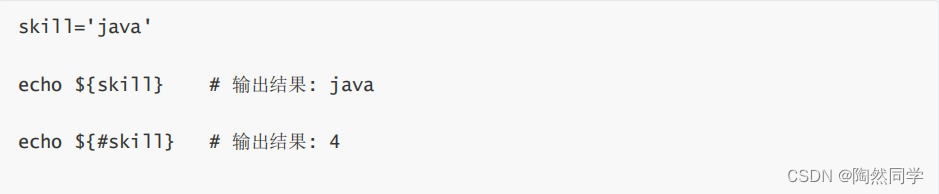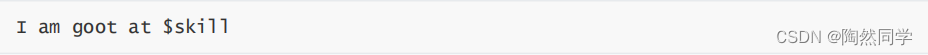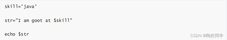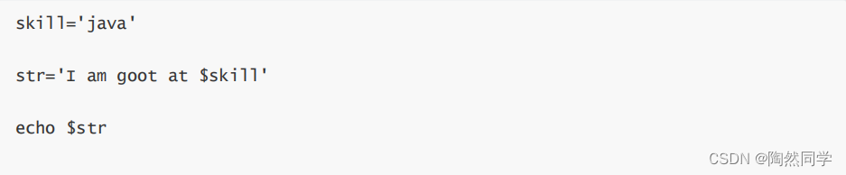 如果不给 skill 变量加花括号,写成 echo "I am good at $skillScript" ,解释器就会把 $skillScript 当成一个