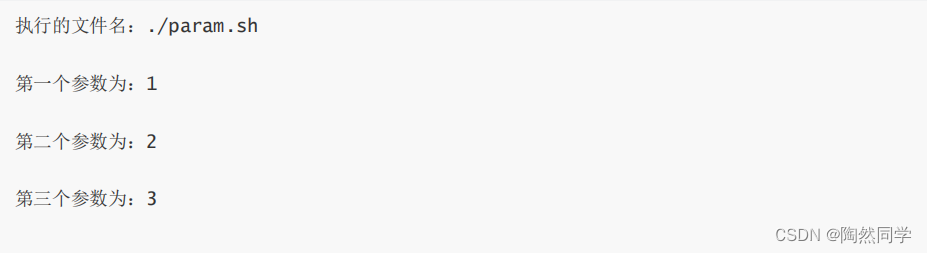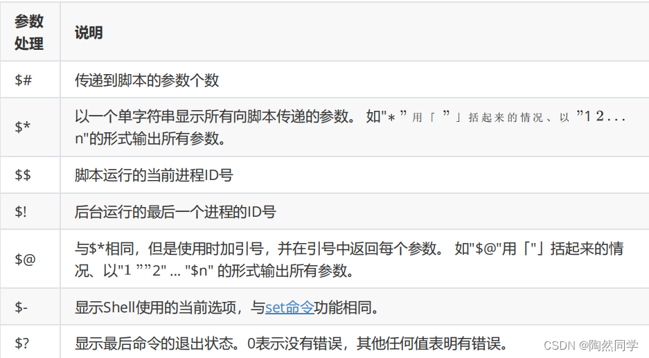 n 代表一个数字, 1 为执行脚本的第一个参数, 2 为执行脚本的第二个参数,以此类推 ……