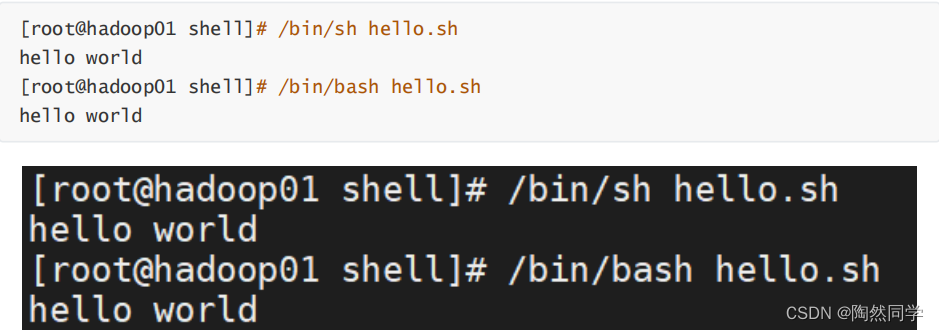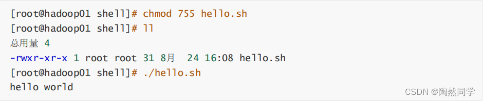 [root@hadoop01 shell] # chmod 755 hello.sh