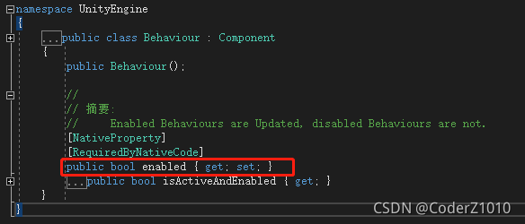 假如我们想取消激活某个脚本组件就将该属性设为false,如下例: