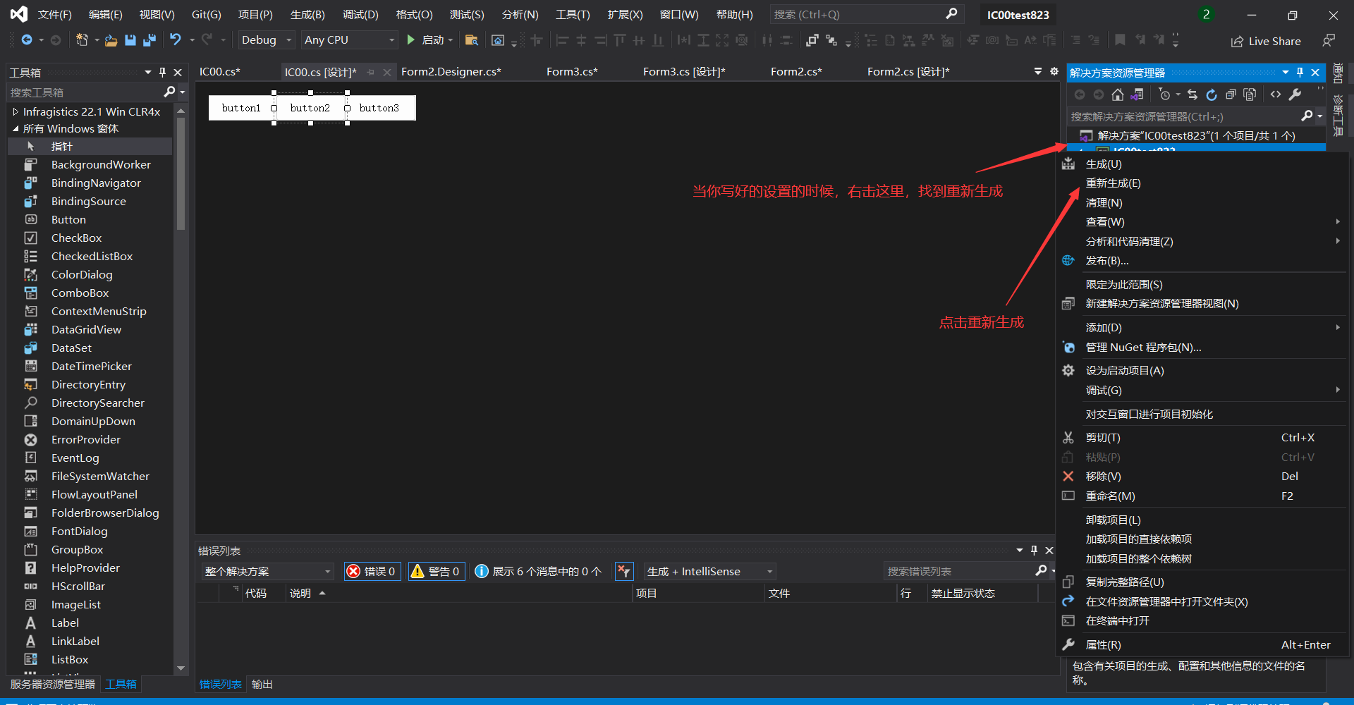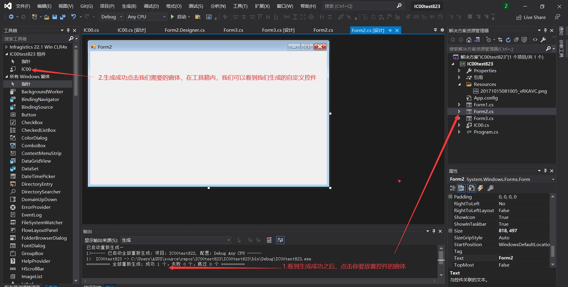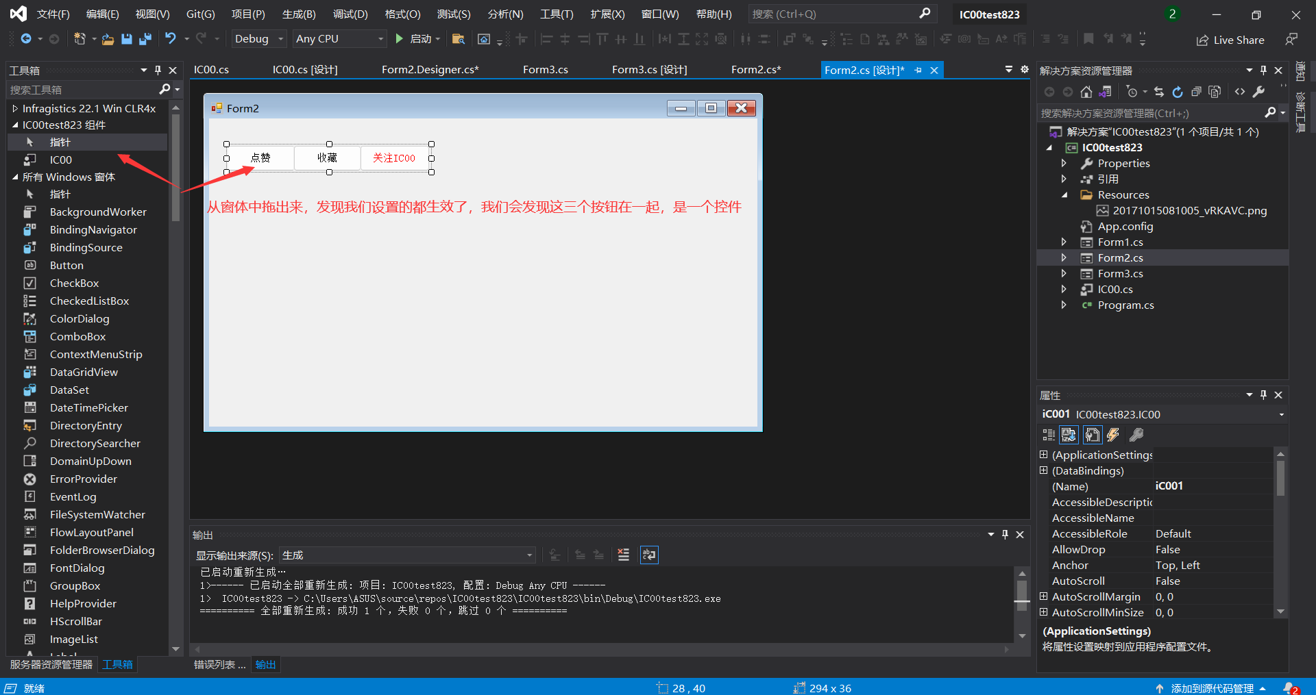 我们在设计好自定义控件需要生成,然后再到工具箱拖出来使用
