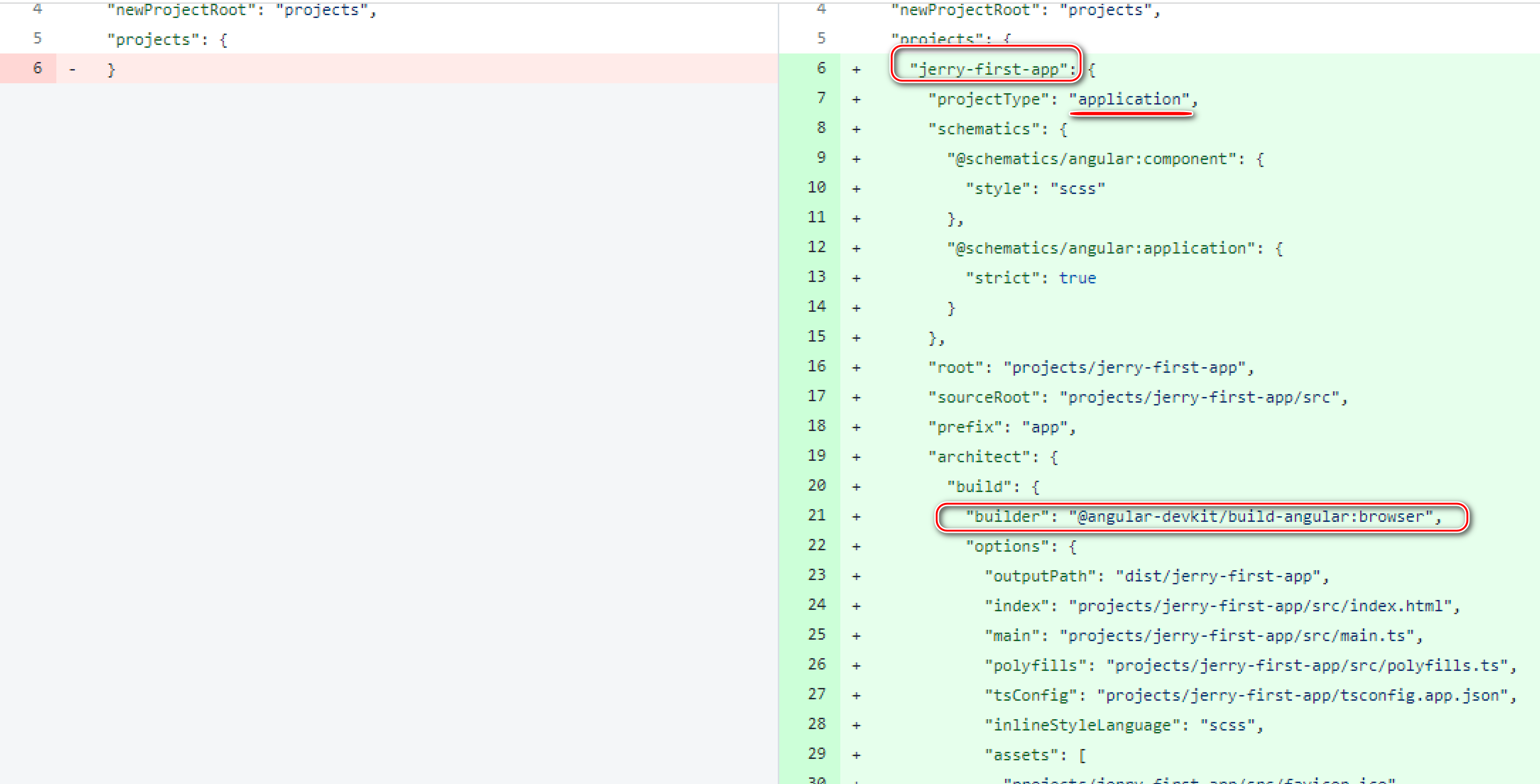 在这个 commit 里,在工作区 workspace 里创建了一个新的类型为 application 的 project: