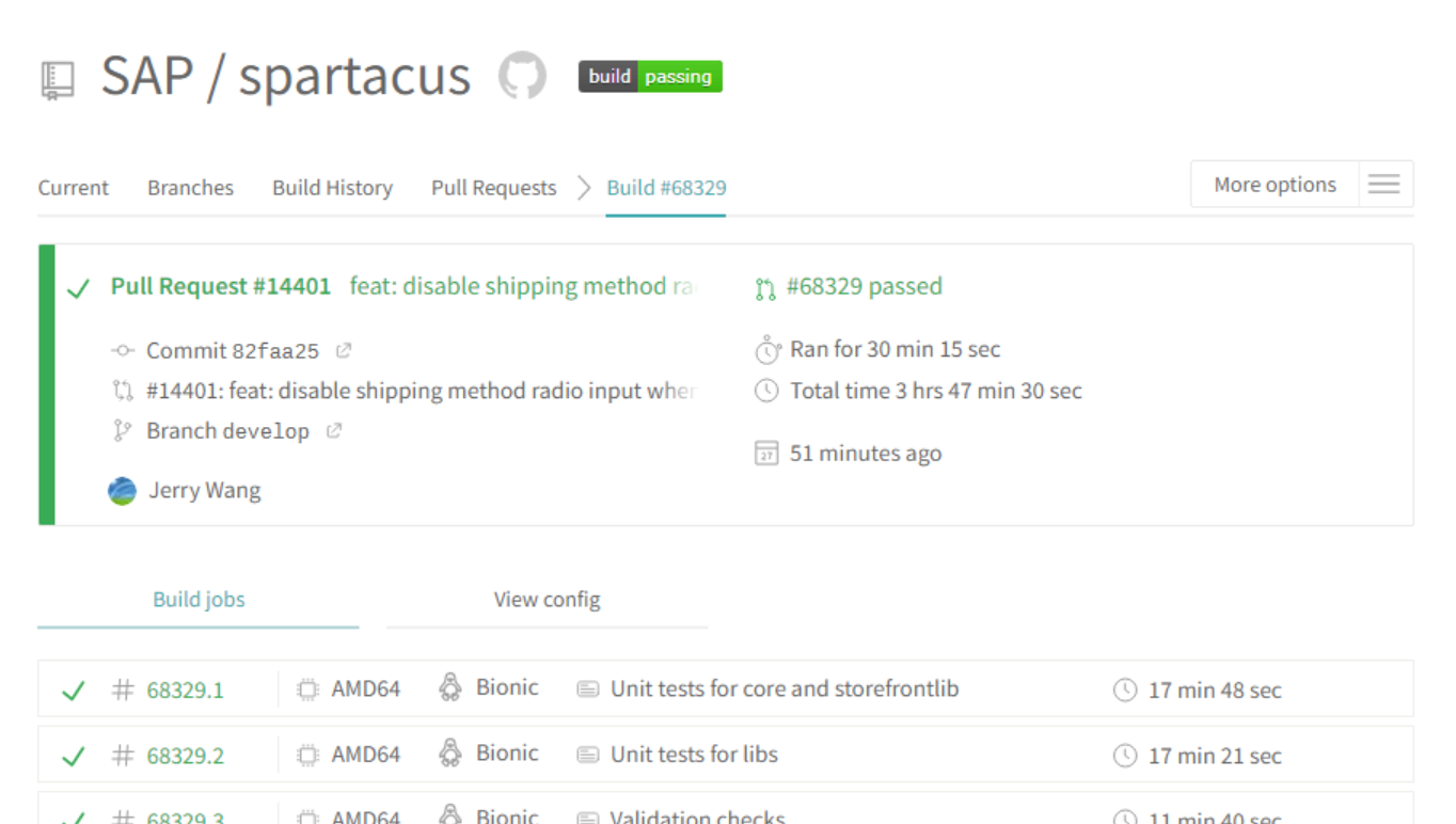 如果其中一项或多项任务失败,则构建被视为损坏。 如果没有任何任务失败,则认为构建已通过,Travis CI 可以将您的代码部署到 Web 服务器或应用程序主机。