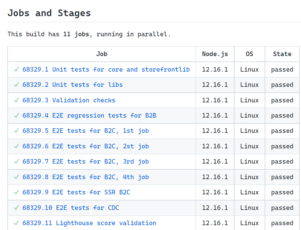 - stage:作为由多个阶段组成的顺序构建过程的一部分并行运行的一组作业。