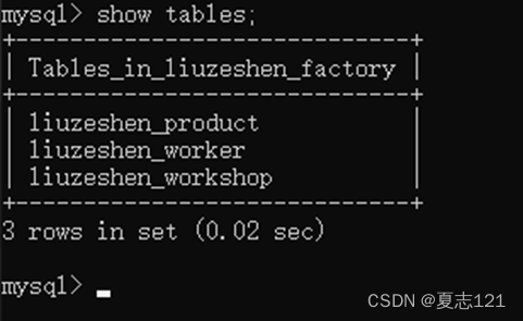 创建完三张表后你查看数据库中所有表