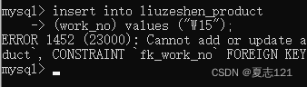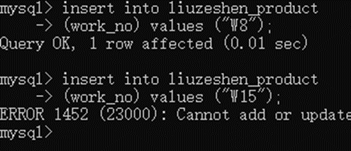 这时发现W15这条数据新增报错,和外键“工号”相关