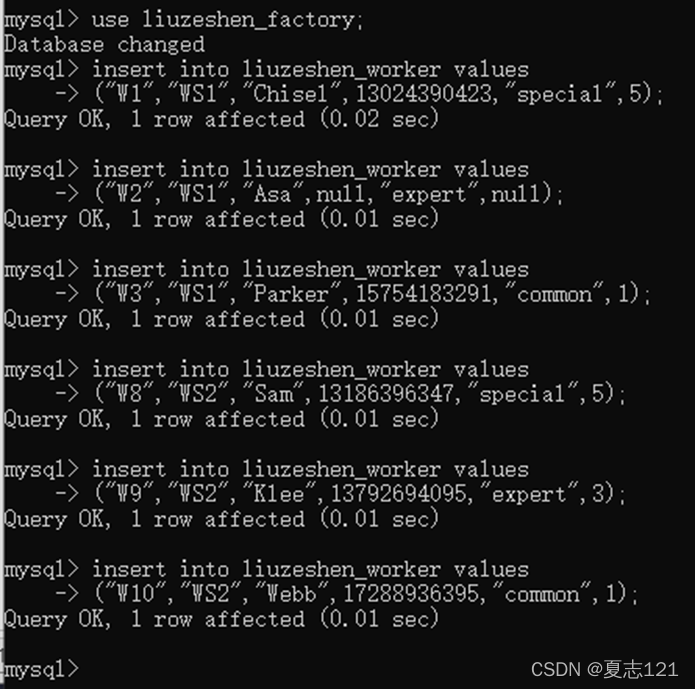 20、正当对自己的修改成果满意之时,老爸秘书发来文件,打开看到是公司现有的车间及员工信息。首先给车间表所有字段批量插入数据