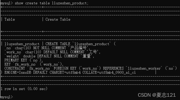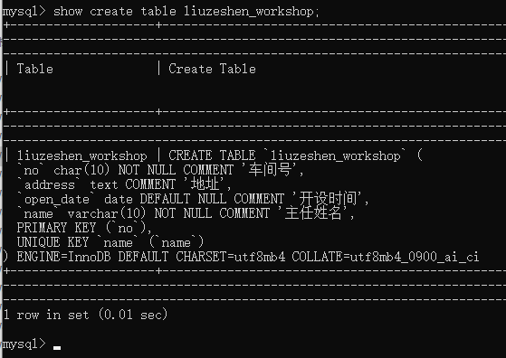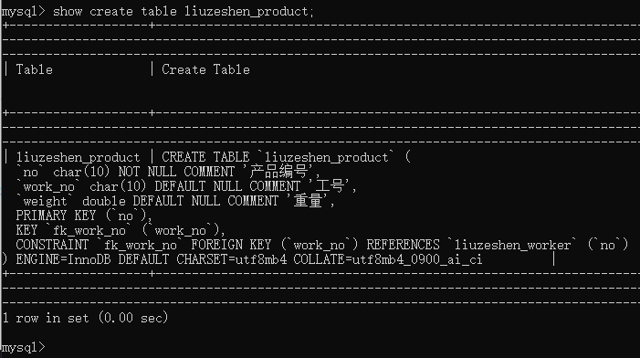 看到了所有自己创建的表非常有成就感,继续逐个查看表的创建信息