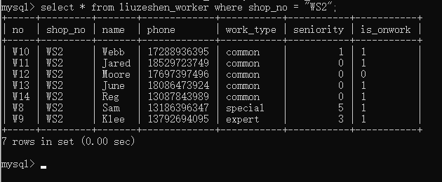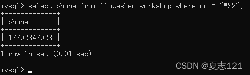 发现并不存在这样的手机号,又去车间表查看主任联系方式以177开头7923结尾的所有字段数据