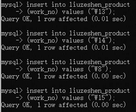 28、新入职职工加入职工表后你又开始执行之前往产品表新增数据的语句,你还是用指定字段批量新增数据的方式插入了所有数据,只指定了工号字段