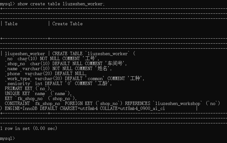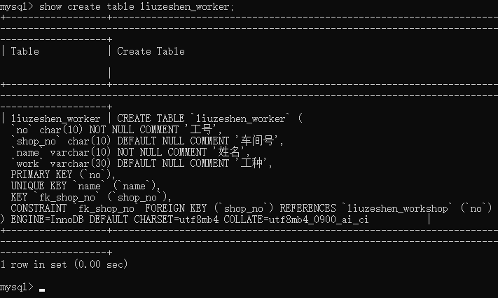 15、之后查看职工表的创建信息