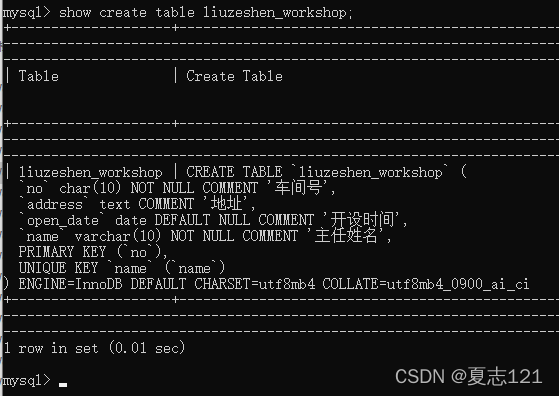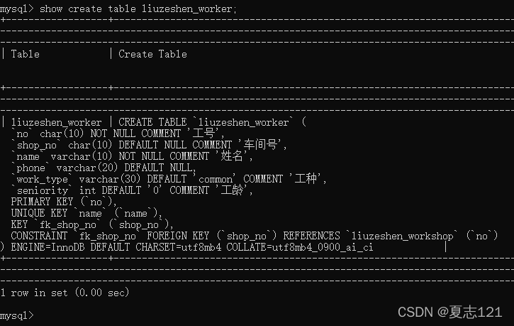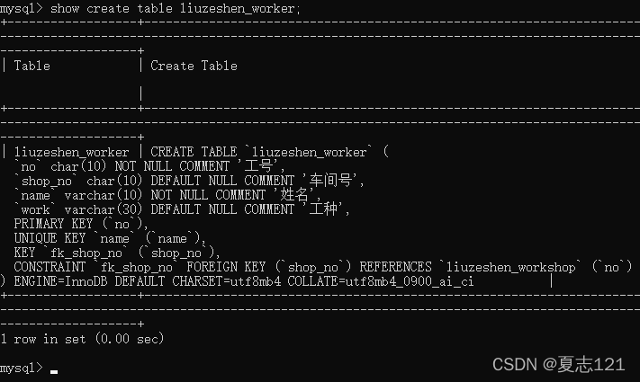 14、首先查看车间表的创建信息