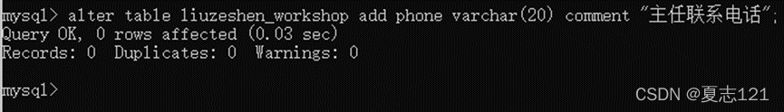 18、车间表需要添加主任的联系电话字段,方便之后管理车间