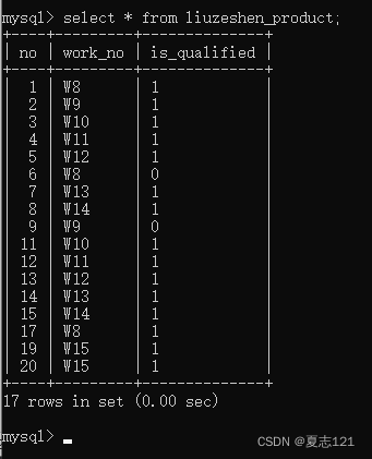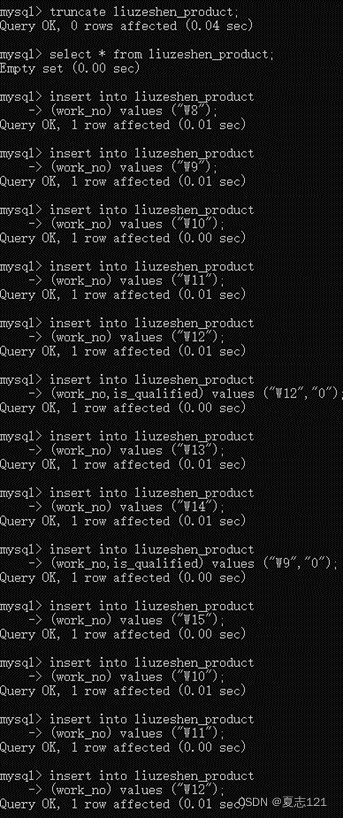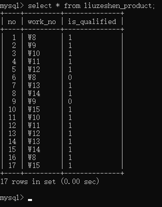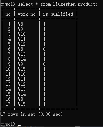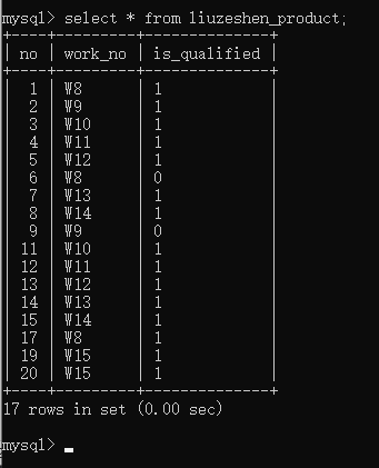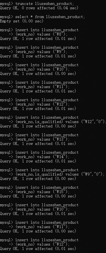 27、设置好了产品编号的自增、是否合格的默认,你发现在新增时不用指定产品编号、是否合格字段,只需要工号这一个字段,简直太赞了,你用指定字段批量新增数据的方式插入了所有数据