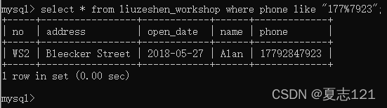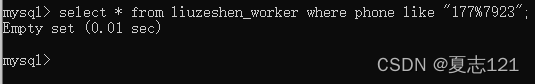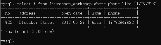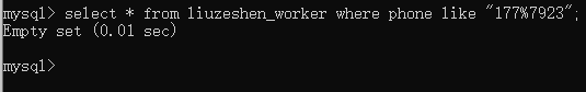 他感叹着数据库真强大,这是他的手机响了,手机号是以177开头7923结尾,他问你这是我们公司的员工吗?你在职工表中查看联系方式以177开头7923结尾的所有字段数据