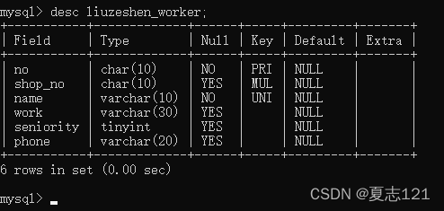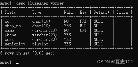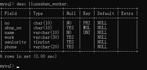 感觉非常赞,之后查看职工表的字段信息