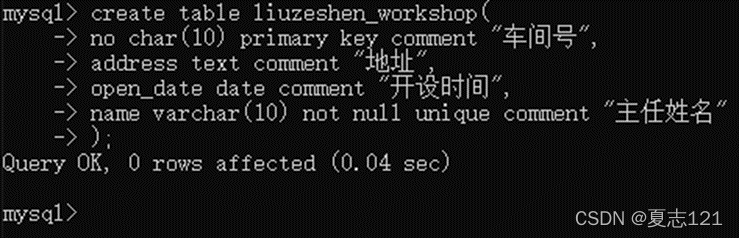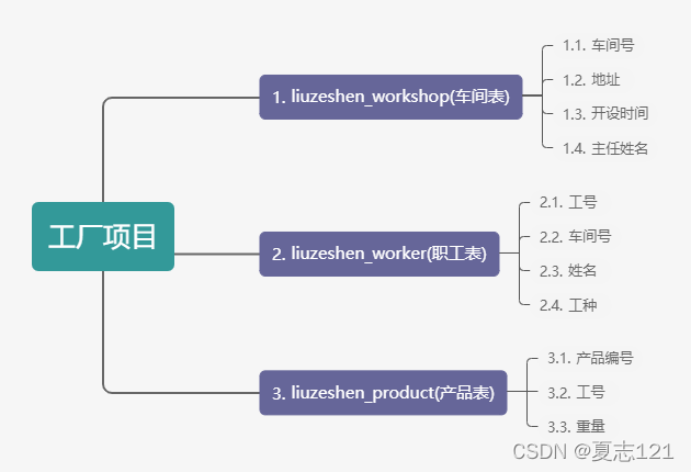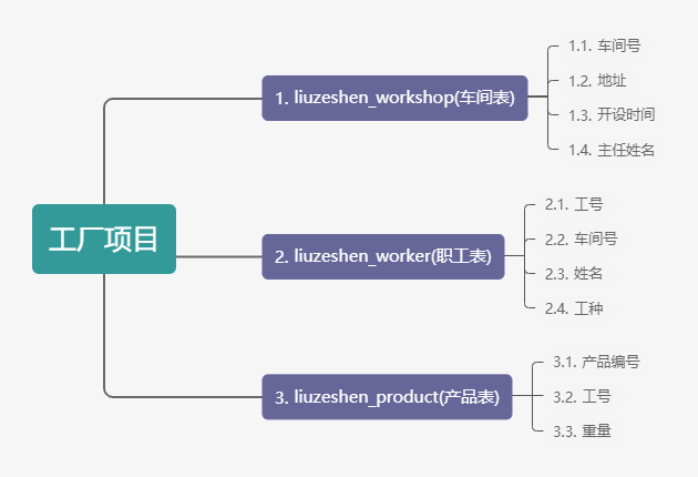 他们看到你的展示后更坚信要你来完成工厂数据库创建,你就数据库创建所需内容和大家讨论,讨论结果是需要创建车间、职工、产品三张表,会后你创建并使用了数据库 姓名全拼_factory