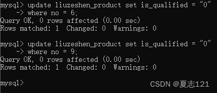 发现产品编号为6和9的两条记录产品应该是不合格的,你把产品表中产品编号在6,9里的是否合格状态改成了0