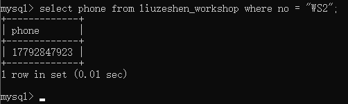 发现果真没有W15这个员工,你准备打电话给WS2的车间主任核实职工信息,所以查看了车间表中车间号为WS2的主任联系方式字段数据