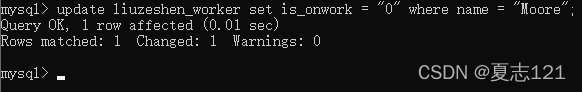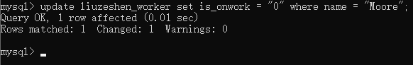 25、新增好字段后,再将Moore的是否在职字段修改为“0”,表示他已经离职了
