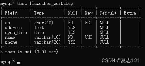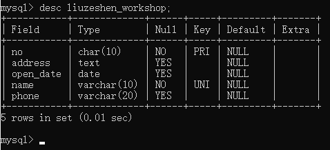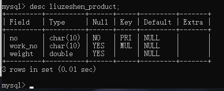 加好后查看车间表的字段信息