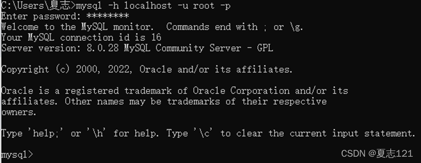 5、你打开了控制台,输入指令登录MySQL