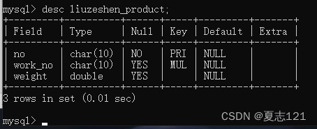 你查看了产品表的字段信息