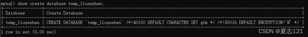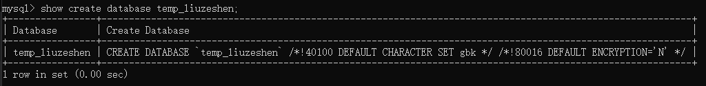 8、查看 temp_姓名全拼 数据库创建信息,告诉大家刚才的修改已经生效了