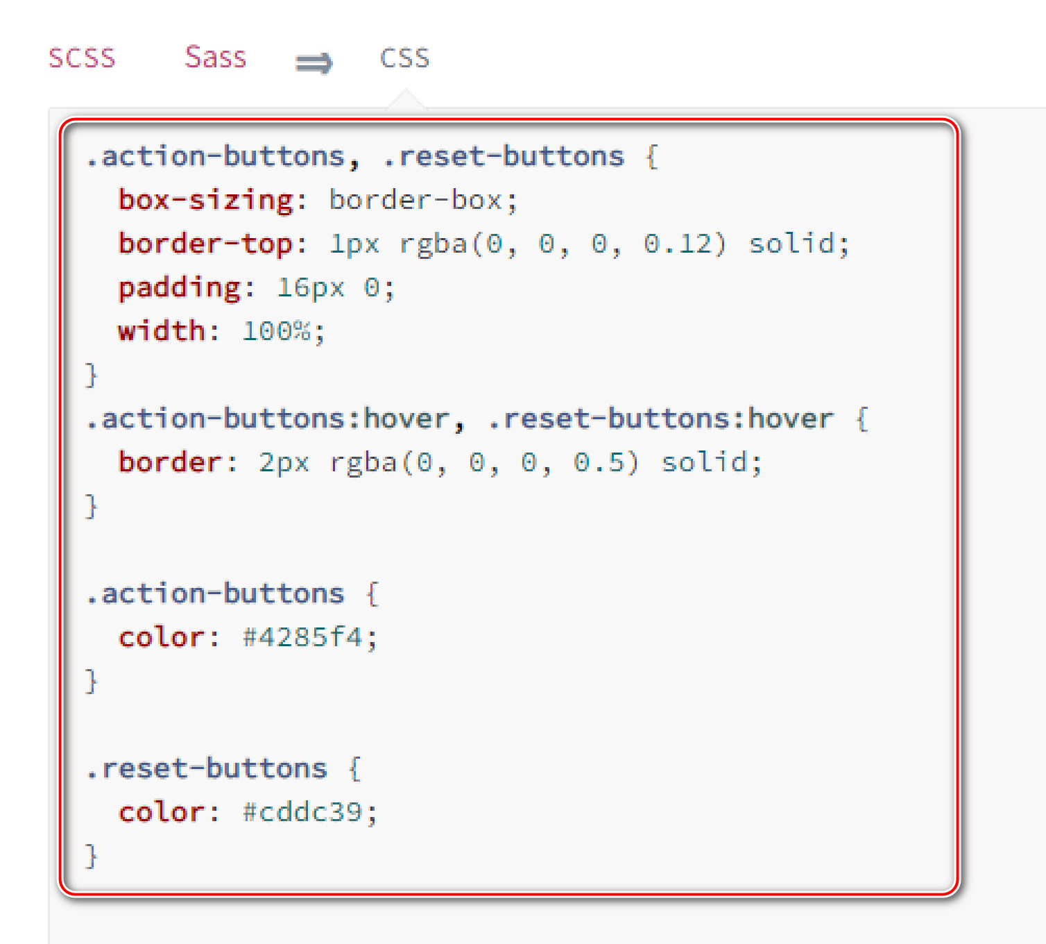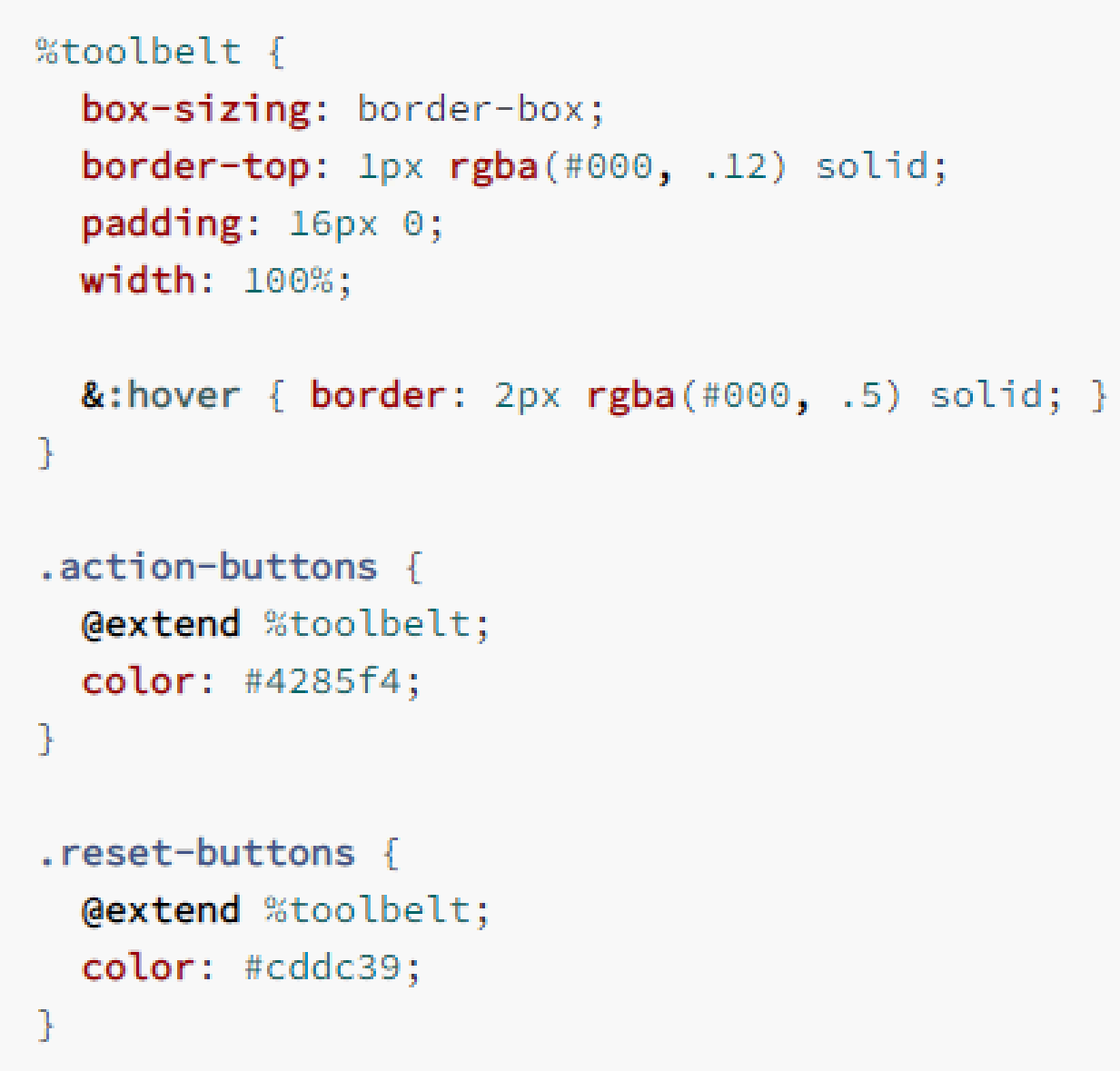上图的 reset-buttons 和 .action-buttons, 就分别扩展了 %toolbet 并且重新定义了 color 的值。